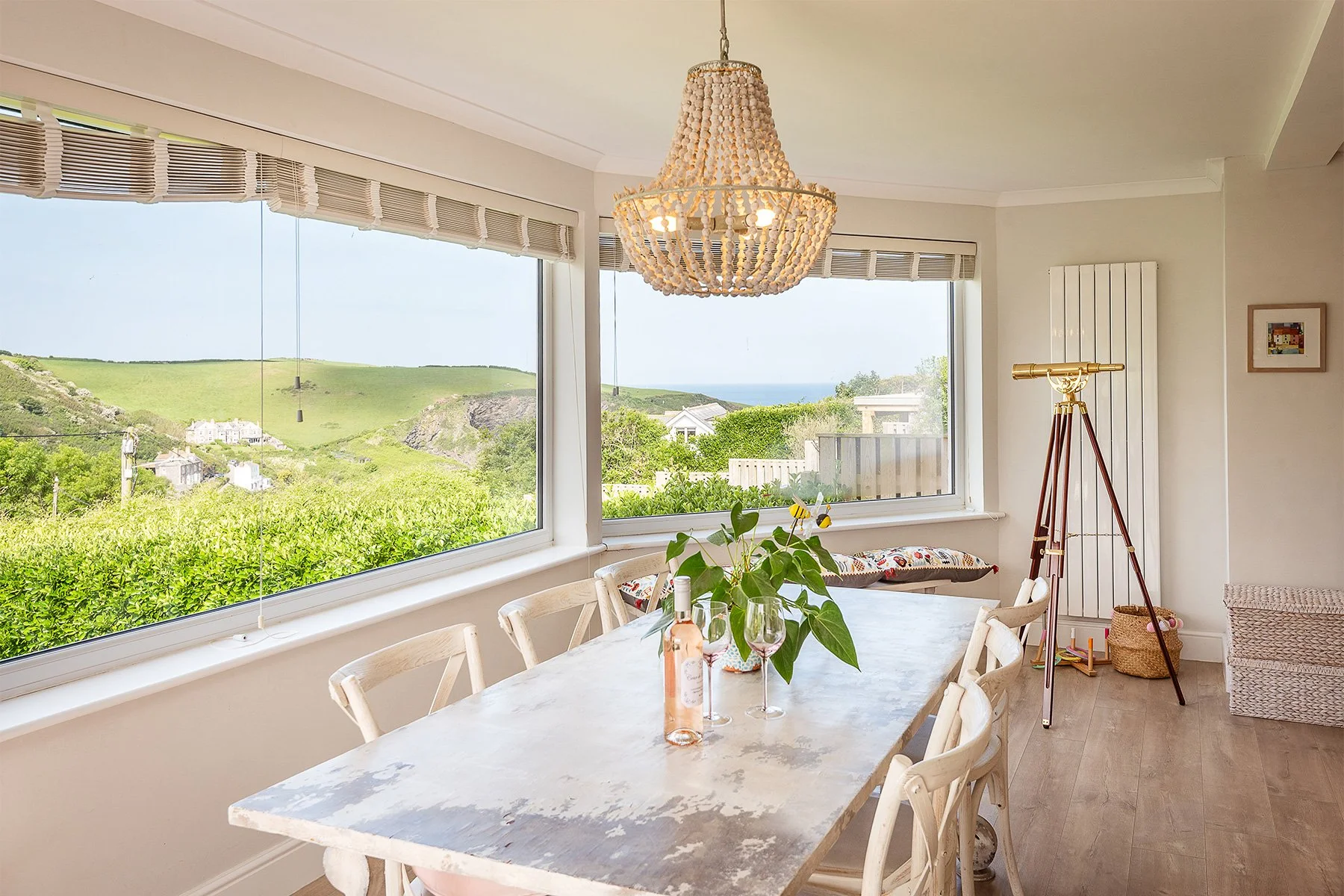 Imagine spending relaxed summer days on the sunny south-facing deck and enjoying cosy winter evenings in the welcoming lounge. Compass Rose provides ample space for families to unwind and make the most of the outdoors. The dining room's patio doors open directly onto the sun deck, offering a fantastic spot to admire the views across Port Isaac, the endless horizon, and spectacular sunsets.