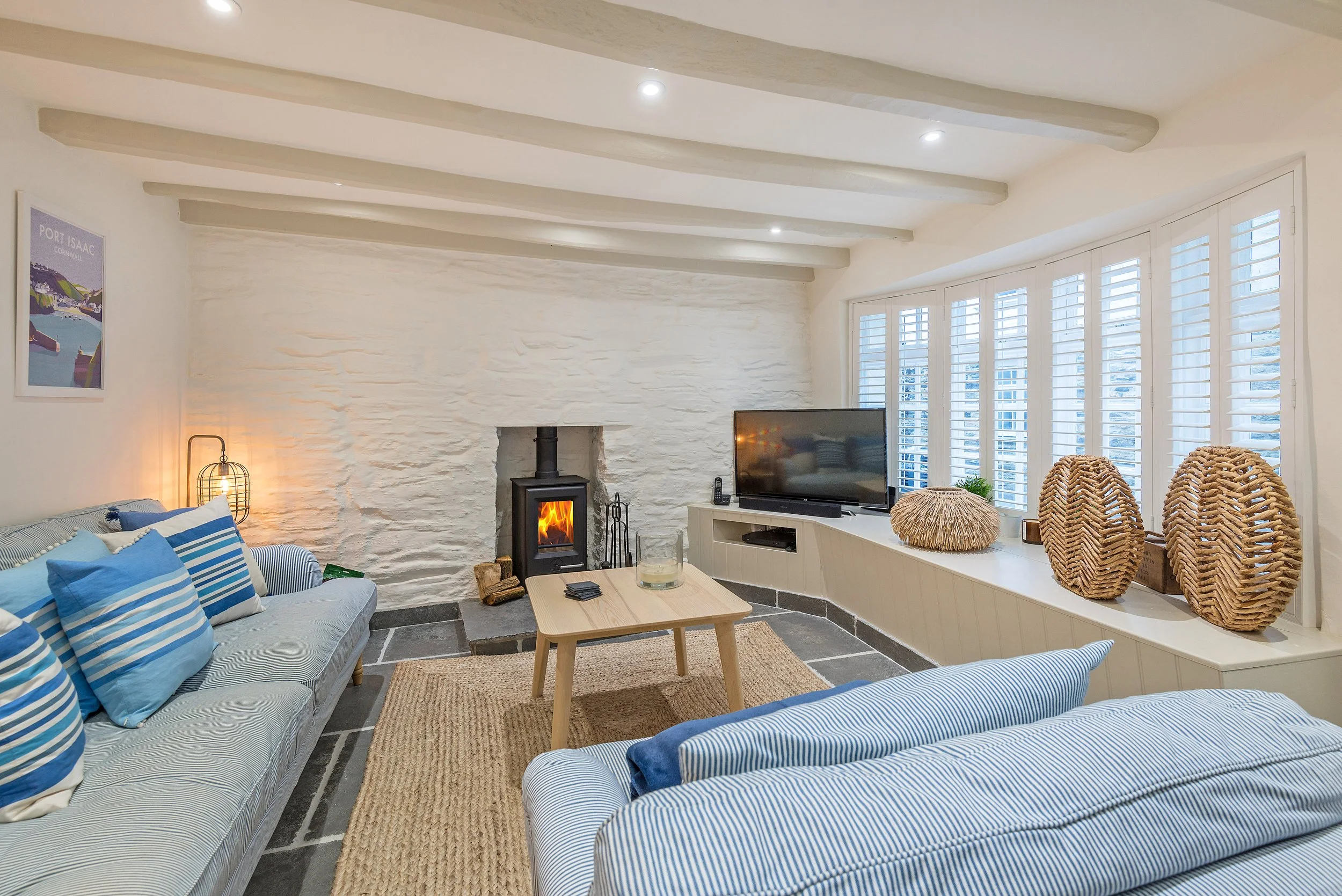 Cor Anglais is an enchanting coastal cottage that has been expertly refurbished in calming hues and finished with great attention to detail. Beautifully appointed, this three-bedroom stone cottage marries modern conveniences and clever storage with traditional features and is situated mere moments from Port Isaac’s picturesque fishing harbour and the southwest coast path.Just moments from the harbour on Middle Street, Cor Anglais has been lovingly restored to provide well-considered accommodation arranged over two floors. The open plan living space comprises sitting, dining and kitchen areas that have undergone extensive refurbishment to provide both beautiful and functional spaces. With 3 bedrooms, all open to the eaves
