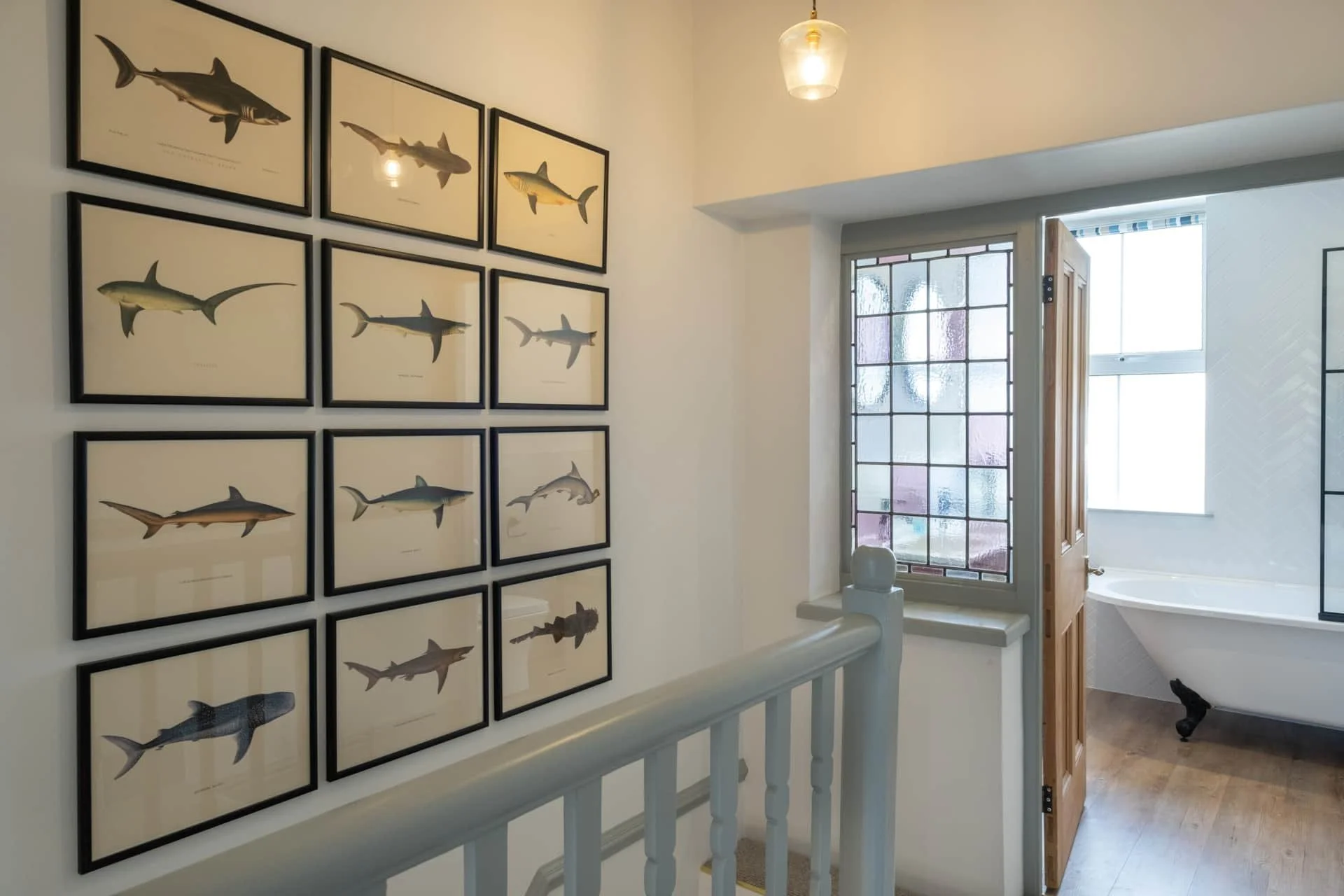 The first floor offers a south facing double bedroom with large windows to take in the summer sun, a twin bedroom overlooking the rear garden and the family bathroom. Retreat upstairs to the top floor where in the eaves of the house you will find a large, spacious master bedroom, with original oak beams, a lounge area and sea & harbour views.