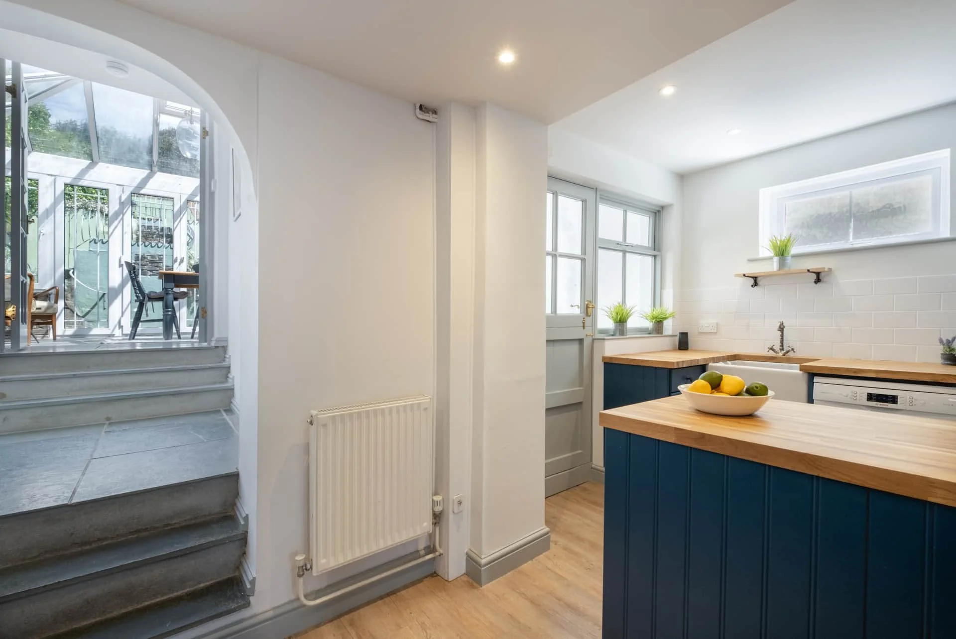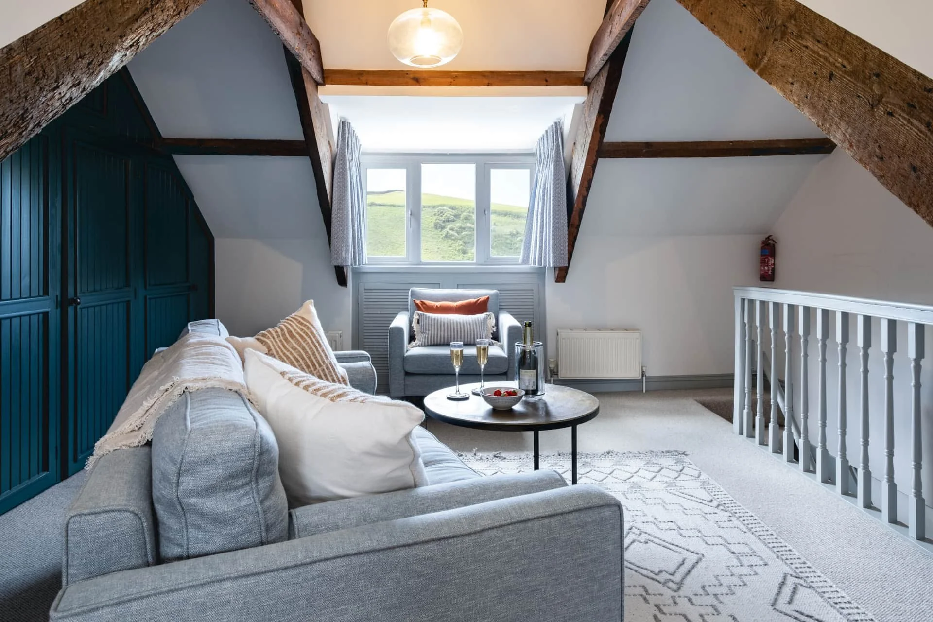 The Coastal chic inspired design is combined with original features to create a comfortable family home-from-home. On colder days spend time with a book and glass of wine in the cosy sitting room with its feature wood burner.